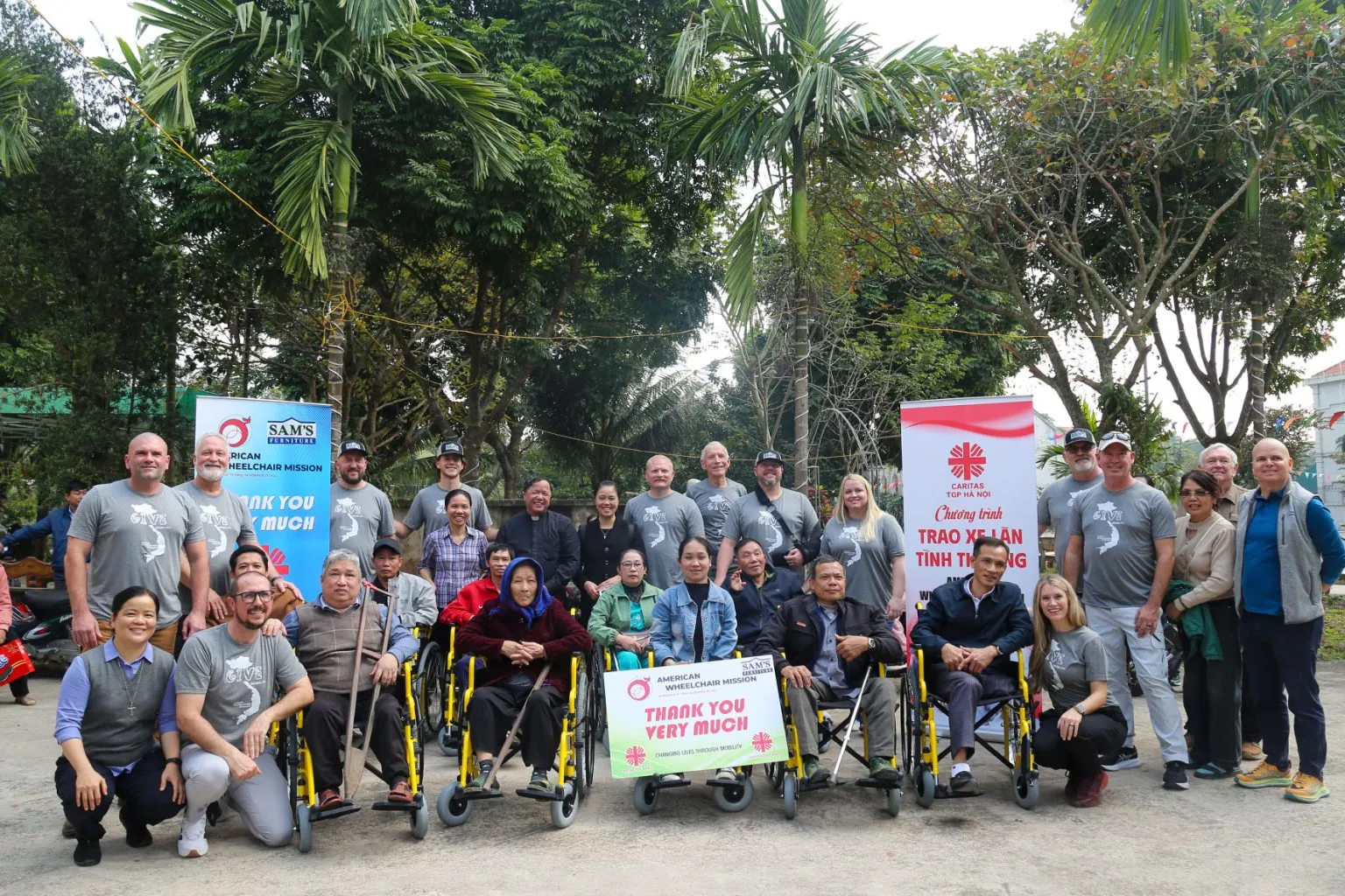 Trong đợt này, Caritas đã trực tiếp trao tặng xe lăn cho người khuyết tật vận động thuộc Câu lạc bộ Giọt Hồng và Nhân Bình (Giáo hạt Lý Nhân), cho người khuyết tật tại Giáo hạt Nam Định, cùng các cá nhân có hoàn cảnh khó khăn tại Giáo xứ Tân Hội, Giáo xứ Đại Ơn và Giáo họ Thanh Nê (Giáo xứ Yên Kiện).