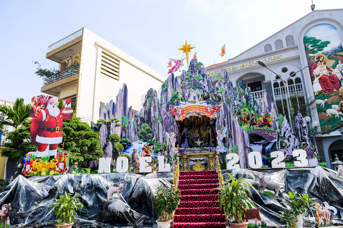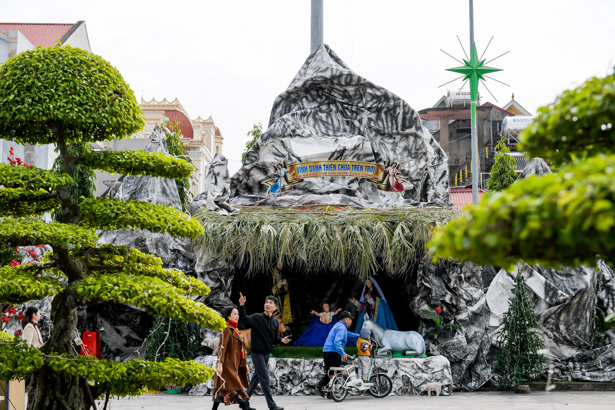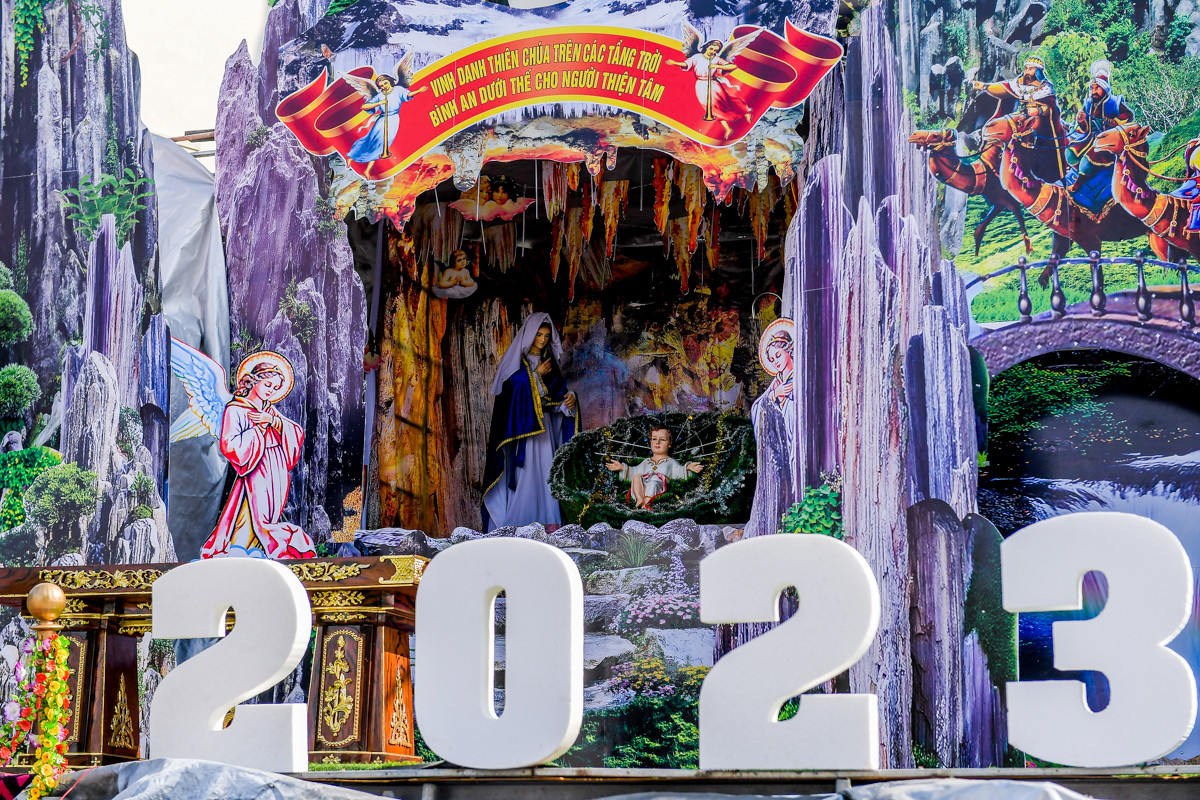 Không khí Giáng sinh bao trùm xung quanh nhà thờ, sân khấu chính với thiết kế hang đá nơi Chúa giáng sinh đã được dựng xong để chuẩn bị cho đêm nay (24/12). Điểm nổi bật năm nay tại đây là cây thông Noel cao hơn 30m ngay trước nhà thờ. Các hang đá tái hiện đầy đủ về Thiên Chúa giáng sinh cũng đã được hoàn thành đẹp mắt.