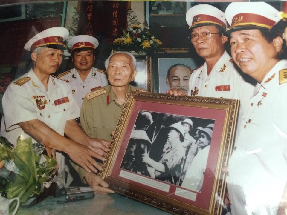 Anh hùng Đỗ Văn Chiến (ngoài cùng bên phải) trong lần đến thăm Đại tướng Võ Nguyên Giáp
