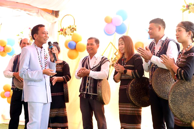 ![]() Hiệp sĩ Đại Thánh giá Lê Đức Thịnh bắt nhịp bài hát "Một mẹ trăm con" cùng với đồng bào dân tộc ở giáo sở Đăng Srỗn. |