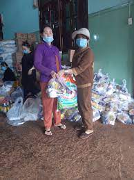 Chị Ngọc Linh (bên phải) tặng quà cho hội viên khó khăn do dịch bệnh covid-19. Ảnh: CTV |