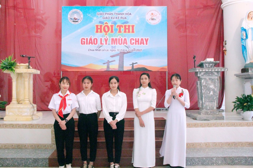 Chúa nhật lễ Lá, ngày 10.4.2022, giáo xứ Kẻ Rừa, giáo phận Thanh Hóa đã tổ chức hội thi giáo lý mùa Chay. Kỳ thi năm nay quy tụ 7 đội thi, có hơn 350 thí sinh thuộc các giáo họ Ðông Thị, Ðại Lợi, Ngọc Lâu. Hiện diện có cha quản xứ Giuse Nguyễn Văn Hoàng, cha phó Phêrô Nguyễn Văn Hậu, Hội đồng Mục vụ giáo xứ, ban giám khảo. Trong lời phát biểu khai mạc, cha Giuse đã cảm ơn tinh thần hăng say học hỏi giáo lý của tất cả các giáp, các giới trong suốt thời gian qua. Các đội thi theo thể bốc thăm trả lời câu hỏi. Mỗi gói câu hỏi gồm 3 phần: Giáo lý, Kinh Thánh và kinh nguyện, sau mỗi câu hỏi các đội có 15 giây để suy nghĩ trước khi trả lời. Cuộc thi diễn ra rất hào hứng và sôi nổi với nhiều cung bậc cảm xúc khác nhau. Kết quả đã được ban giám khảo gởi về cho cha quản xứ, theo truyền thống của giáo xứ Kẻ Rừa, các giải thưởng sẽ được công bố và trao tặng vào Chúa nhật Phục Sinh. (giaophanthanhhoa.net)