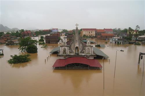 Để giúp bà con, ngoài sự cứu trợ đến từ chính quyền các cấp thì Tòa Giám mục GP Vinh cùng các cha sở tại nơi có lũ cũng ra sức ứng cứu. Bằng nhiều phương tiện thô sơ, trong ngày ngập nước, các ngài đi đến từng nhà thăm hỏi, động viên, căn dặn mọi người nhớ cẩn thận trong việc đi lại. Linh mục Vinhsơn Điểm Cao Dương Đông, chánh xứ Yên Giang mang theo 200 thùng mì và nhu yếu phẩm như dầu ăn, nước mắm, cùng với một số giáo dân chèo thuyền rong ruổi khắp vùng tiếp tế lương thực giúp người dân cầm chừng khi chưa thể đỏ lửa. Các ngài cũng kêu gọi thêm nhà hảo tâm, các nhà dòng giúp đỡ…