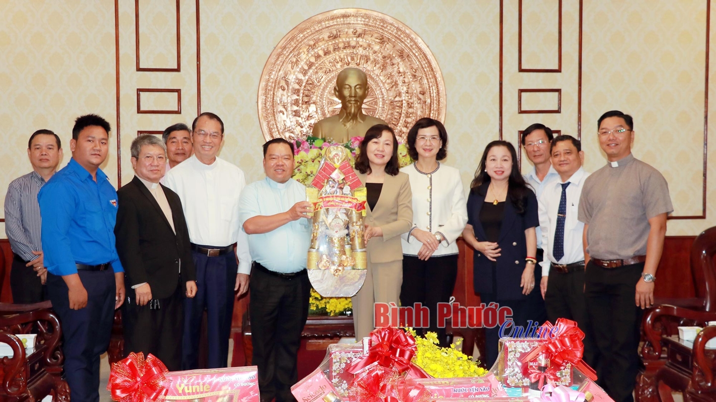 Phó Bí thư Thường trực Tỉnh ủy Huỳnh Thị Hằng gửi lời cảm ơn đến giám mục và các linh mục luôn quan tâm, thường xuyên tuyên truyền, vận động đồng bào công giáo trên địa bàn tỉnh chấp hành tốt chủ trương, đường lối của Đảng, chính sách, pháp luật của Nhà nước, sống “tốt đời đẹp đạo”.