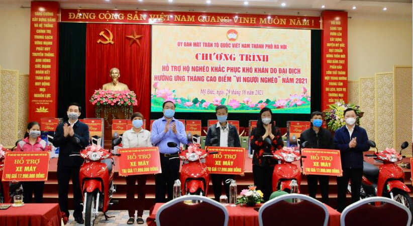 Tại chương trình, Ủy viên Ban Thường vụ Thành ủy, Chủ tịch Ủy ban Mặt trận Tổ quốc Việt Nam thành phố, Trưởng ban vận động Quỹ “Vì người nghèo” thành phố bà Nguyễn Lan Hương trao kinh phí xây nhà Đại đoàn kết cho 15 hộ nghèo; trao sinh kế gồm 5 con bò sinh sản, 5 xe máy cho 10 hộ nghèo, hộ có hoàn cảnh đặc biệt khó khăn; trao tặng 20 bộ máy tính cho 20 học sinh khó khăn… với tổng trị giá 956 triệu đồng.