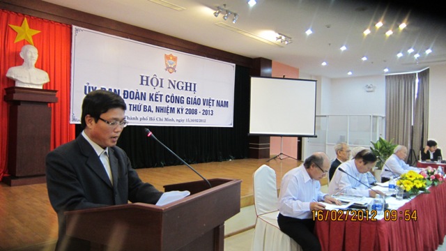 Hội nghị nhằm sơ kết nửa nhiệm kỳ thực hiện Nghị quyết Đại hội “Những người Công giáo Việt Nam xây dựng và bảo vệ Tổ quốc lần thứ V, nhiệm kỳ 2008 – 2013” và đề ra phương hướng, nhiệm vụ công tác năm 2012 và những năm tiếp theo. Tới dự hội nghị có ông Hà Văn Núi Phó Chủ tịch Ủy ban Trung ương Mặt trận Tổ quốc Việt Nam; ông Trần Hoàng Thám Phó Chủ tịch Ủy Ban TWMTTQ Việt Nam, phụ trách phía nam; ông Dương Quan Hà Phó Chủ tịch Ủy ban TWMTTQ Việt Nam, Chủ tịch ỦY ban MTTQ Tp Hồ Chí Minh; ông Nguyễn Mạnh Hùng, phó Ban Dân vận Trung ương; đại diện Cục An ninh Xã hội; đại diện Ban Tôn giáo Chính phủ; đại diện lãnh đạo Mặt trận Tổ quốc một số tỉnh, thành cùng toàn thể Ủy viên Ủy ban ĐKCGVN nhiệm kỳ V (2008 - 2013); một số cơ quan thông tin đại chúng của Trung ương và các địa phương.