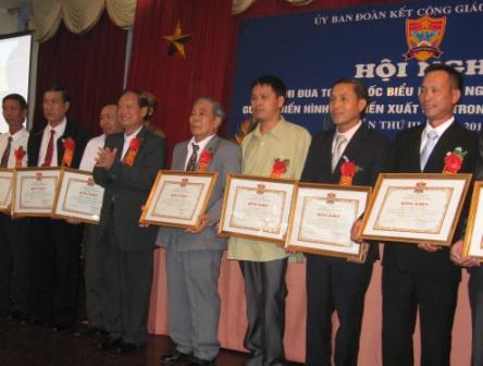 Được cụm thi đua bình chọn, suy tôn đề nghị Ủy ban Đoàn kết Công giáo Việt Nam tặng Cờ thi đua xuất sắc; Được hội đồng Thi đua- Khen thưởng kỷ luật của Ủy ban Đoàn kết Công giáo Việt nam đánh giá đạt từ 90- 95 điểm (đối với Cờ thi đua xuất sắc), từ 80 đến dưới 95 điểm (đối với Bằng khen).