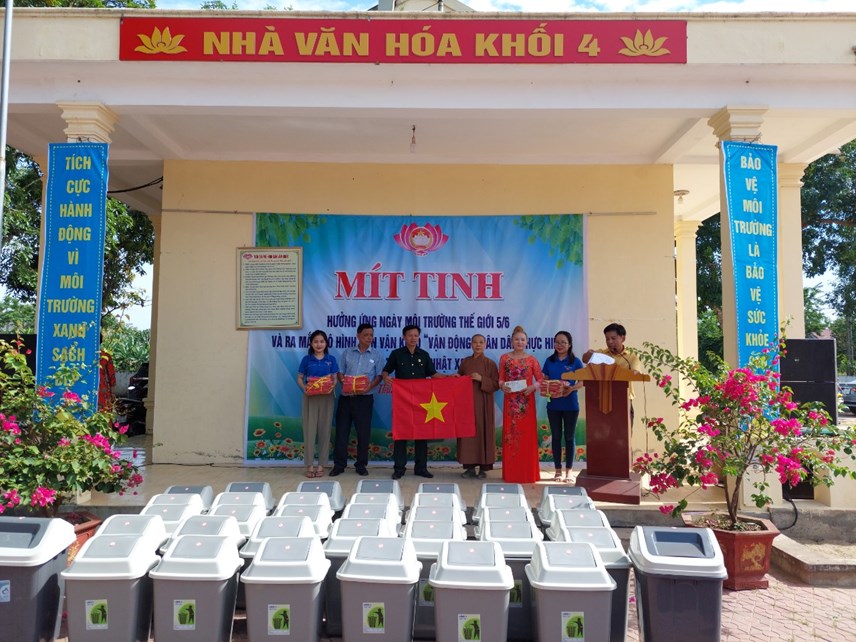 Tại buổi mít tinh, Ni sư Thích Nữ Diệu Nhẫn, Phó trưởng Ban trị sự GHPG tỉnh Nghệ An, Trụ trì chùa Cần Linh đã trao 300 lá cờ Tổ quốc cho ngư dân, 5 triệu đồng cho Hội khuyến học phường Nghi Thu và 10 suất quà (mỗi suất 500 ngàn/cháu) cho học sinh nghèo học giỏi, kẹo bánh để tổ chức ngày 1/6.