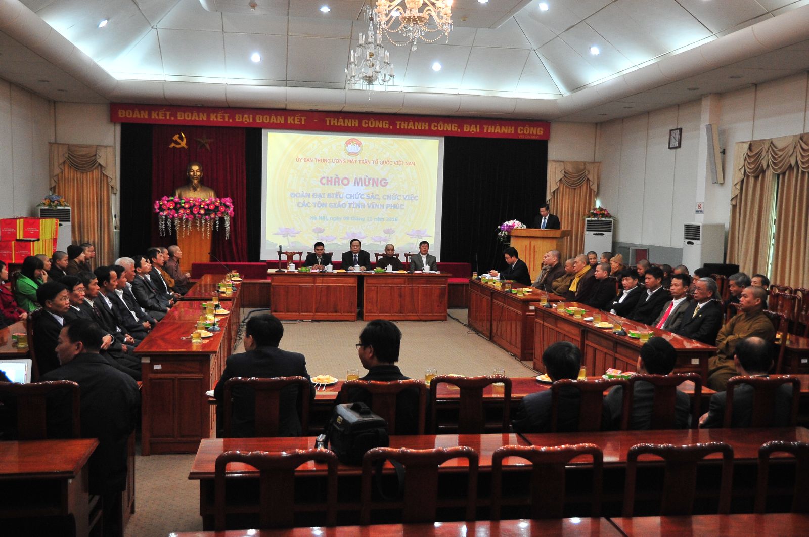 Thay mặt cho một số chức sắc đại diện cho các tôn giáo dự cuộc gặp gỡ, Thượng toạ Thích Minh Trí, Phó Trưởng ban Trị sự Giáo hội Phật giáo tỉnh Vĩnh Phúc, Phật giáo luôn đồng hành, chia ngọt sẻ bùi cùng dân tộc, đất nước. Bởi dân tộc Việt Nam là dân tộc bao dung, hiếu hòa, trong đó có bao dung về tôn giáo, đường hướng của các tôn giáo ở Việt Nam đều giống nhau, đó là vì đạo pháp, vì dân tộc các hoạt động của tôn giáo đều hướng tới gắn kết vì lợi ích quốc gia, tín đồ của tôn giáo phải là công dân tốt của đất nước.