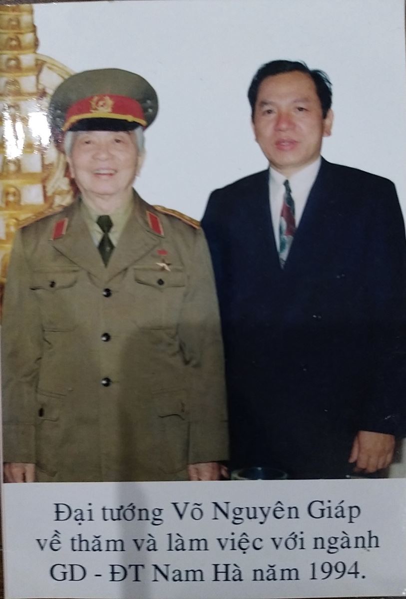 Đại tướng Võ Nguyên Giáp về thăm và làm việc với ngành GD - ĐT Nam Hà năm 1994 |