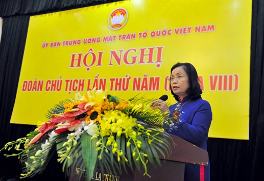 Phó Chủ tịch UBTƯ MTTQ Việt Nam Bùi Thị Thanh phát biểu tại Hội nghị