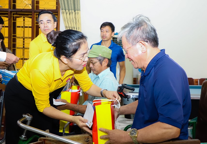 Nhân dịp này, Phó Chủ tịch - Tổng Thư ký Nguyễn Thị Thu Hà đã trao tặng quà cho đại diện Trung tâm, đồng thời trao 59 suất quà, mỗi suất trị giá hơn 1,1 triệu đồng cho 59 thương binh, thân nhân liệt sĩ, người có công đang được chăm sóc tại Trung tâm Điều dưỡng Thương binh Nghệ An.