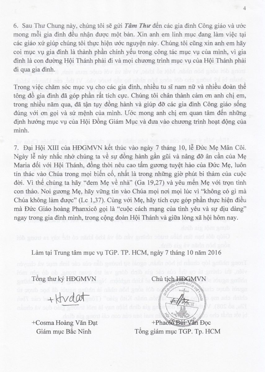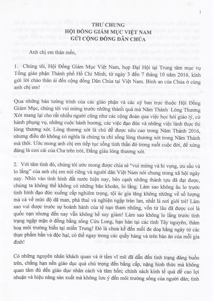 Thư Chung của Hội đồng Giám mục Việt Nam gửi Cộng đồng Dân Chúa sau Đại hội lần thứ XIII (năm 2016)