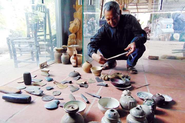 Những món cổ vật ông Lưu Văn Kiên đã sưu tầm. |